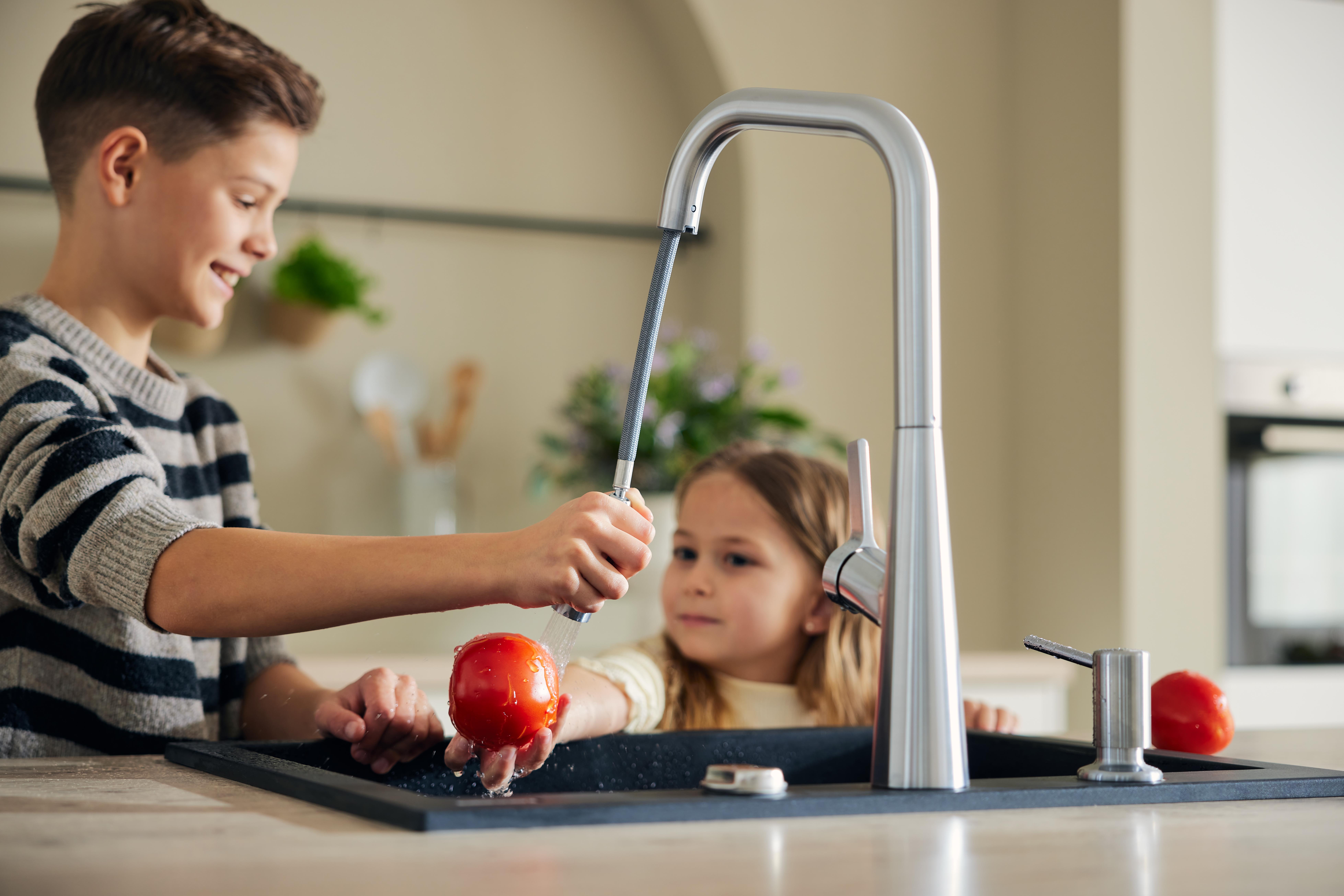 Unsere Markenidentität erzählt von Nähe, Vertrauen und Gemeinschaft. Das prägnante Signet verbindet Wasser und Werk zu einer Einheit, während frische Farben und natürliche Bilder den Menschen in den Mittelpunkt stellen. Wir gestalten nicht nur Armaturen – wir gestalten das Herz Ihres Zuhauses.
